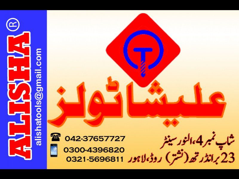 Alisha Tools and Traders is pioneer company serving Pakistani Customers in the field of Power Tools, Replacement/Spare Parts and Power Tools Accessories for the past 9 plus years. We deal in replacement and repair parts of Power Tools of all brands. ALISHA ARMATURES are our speciality. ALISHA ARMATURES are known for quality through out Pakistan. Our other Products i.e. Spare Parts and Accessories also beat the parts/accessories available in the market, in quality. We also specialise in Power Tools and Industrial Carbon Brushes. Contact us for e-Brochure or Price Quote at [email protected]